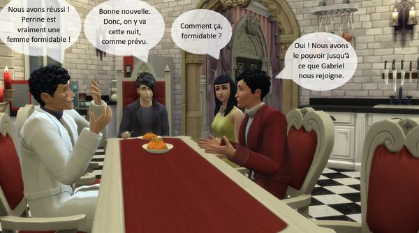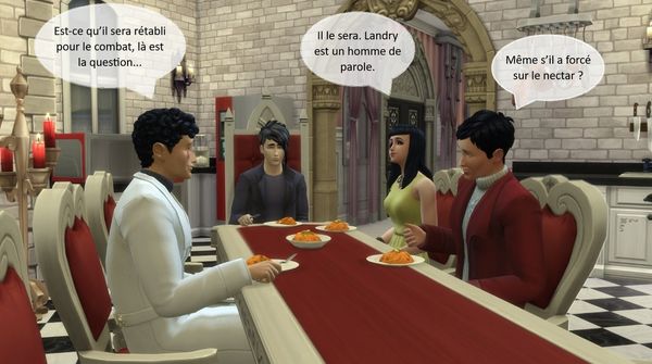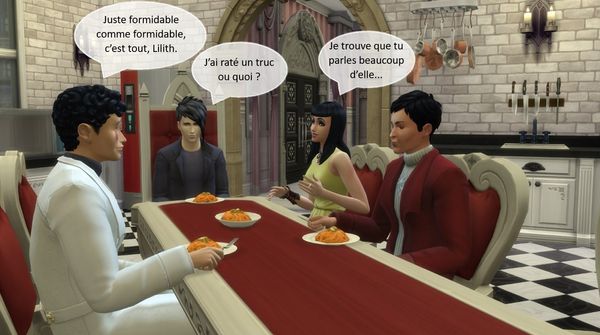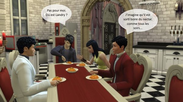 Comme chaque soir, tous se réunirent autour d’un repas. Perrine ne se joignait jamais à eux, car elle n’avait aucun besoin de se nourrir, mais surtout pour les laisser discuter tranquillement.