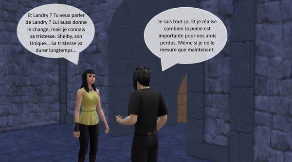 - Il y a une chose que je ne t’ai pas encore dite : j’ai rencontré Perrine. C’est une femme formidable. Elle a apparemment ses entrées auprès du Créateur. Il a donné à Lilith une seconde chance d’aimer. C’est merveilleux, n’est-ce pas ? Il voulait la remercier d’avoir participer au combat. Tu sais, nous avons vaincu Straud et tous ses disciples. Aucun d’entre eux ne pourra plus te faire du mal.