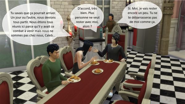 Lorsque Claire Guérin arriva, Caleb l’introduisit directement dans la cuisine. Il voulait s’entretenir en tête à tête avec elle sans la présence de ses amis. Il lui annonça directement sa façon de penser.