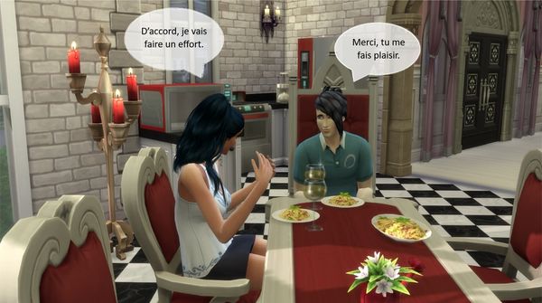 Le soir-même, Caleb et Rose se retrouvèrent au salon. Elle allait beaucoup mieux. Son corps amaigri n’était plus. Le sang de vampire commençait à faire effet et Caleb en était enchanté. Elle s’était assise sur ses genoux.