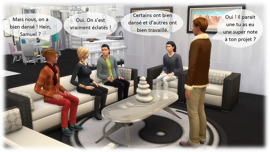- Le projet scolaire, c’était la priorité ! Tu n’avais pas à sortir avant de l’avoir terminé. D’ailleurs, tu n’avais pas à sortir du tout sans notre permission.