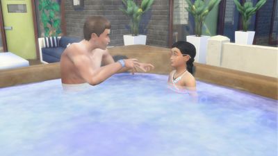 Le dimanche, nous profitons de notre bain à remous et nous nous amusons à nous raconter des histoires.