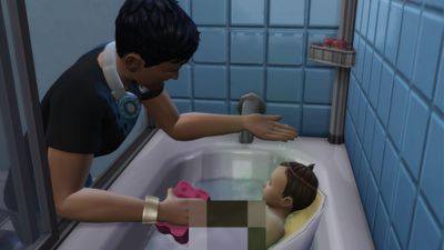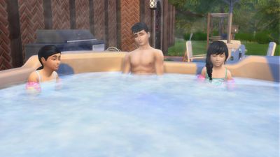 Elles en profitent également pour se baigner dans le bain à remous avec leur frère.