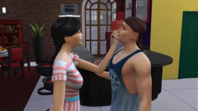 Mais voilà qui on retrouve en rendez-vous amoureux juste à côté de notre table: Grand-frère et sa petite-amie. Maman ne peut pas s’empêcher d’aller les taquiner.