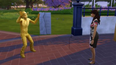 Pendant une de mes balades, je croise une statue vivante. Je la regarde un moment. Moi aussi, je vais devoir faire ça. Je lui donne un pourboire et en profite pour lui demander où trouver un déguisement. Il me donne gentiment le site pour en acheter.