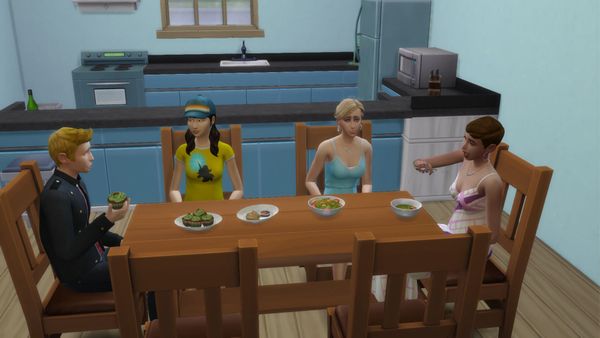 J’ai préparé plusieurs plats mais l’ambiance n’était pas vraiment à la fête. Il semble que Travis est rejeté par Summer et qu’elle a un peu de mal à s’en remettre. Je tente de lui remonter en mettant un peu de musique et on se met à danser. Elle semble se détendre un peu.
