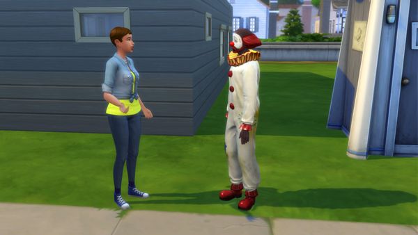 Le fameux clown triste ! Je m’empresse de sortir et le salue gaiement mais il est vraiment très triste ce clown. Nous discutons et je tente de le réconforter sans grand succès. Il est vraiment très maussade pour un clown. Mais bon, voilà une deuxième tâche de la mission Déesse accomplie !
