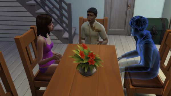 Le soir même, Maman Eve revient à la maison sous forme de fantôme. Elle tente de réconforter maman Zoé mais en vain, elle ne peut pas encore la voir. Personne ne le peut pour l’instant à part moi qui suis dans le même état. Mais elle ne semble pas vraiment là. C’est trop récent, trop soudain et brutal. Moi, je ne suis pas vraiment mort finalement, je n’ai pas sentit la mort, la faucheuse n’est pas venu pour moi.