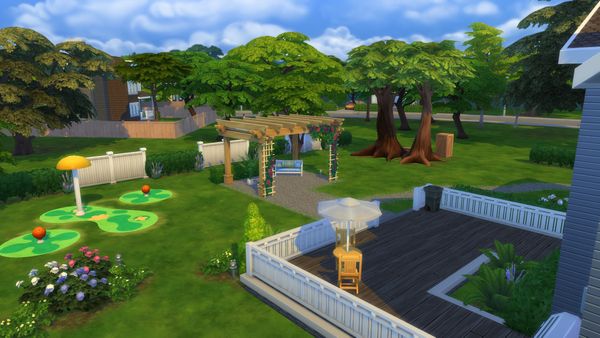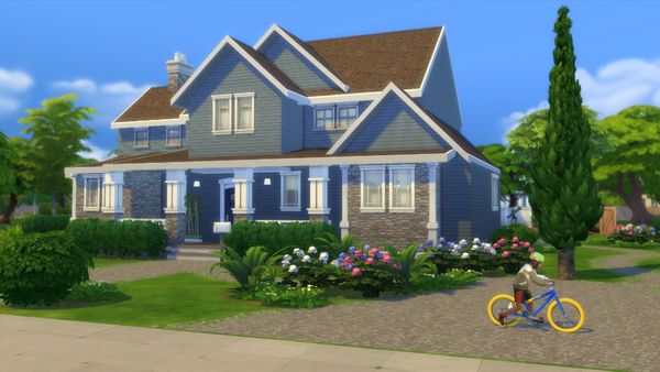 Zaczęłam od domu rodzinnego Michaelsonów. Jest to tradycyjny, niebieski dom na przedmieściach, z białymi oknami i kolumnami. Przy domu mamy duże podwórko z miejscem do pluskania i domkiem na drzewie. To doskonały wybór dla rodziny z dziećmi – dom otoczony jest zielenią i kwiatami, a duży podjazd umożliwia dzieciakom ćwiczenie jazdy na rowerku.
