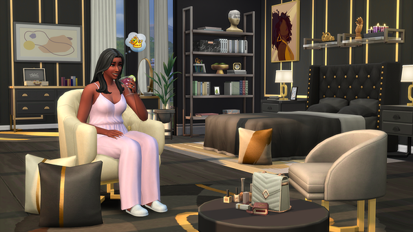 Trudno mi być obiektywną, ponieważ tak naprawdę uwielbiam cały zestaw, ale sądzę, że najbardziej wyróżniają się łóżko i poduszki! Korzystając z kodu „move objects” z łatwością można spersonalizować każdą sypialnię, a poduszki są na tyle uniwersalne, że sprawdzą się w każdym wystroju. Nie mogę się też doczekać, aż zobaczę, w jaki sposób gracze konsolowi wystroją pokoje, wykorzystując różne eleganckie i nowoczesne drobiazgi oraz inne przedmioty – aby je zdobyć, nie będą musieli korzystać z (fenomenalnego) kodu „live edit” czy „hidden objects”. Gdybym miała wybrać jeden przedmiot, który najbardziej mi się podoba, byłyby to właśnie te piękne – zarówno modne, jak i luksusowe – dzieła sztuki. Podkreślają one pragnienie zespołu The Sims, by wnieść do gry wielorakie przedmioty, pasujące do różnych ludzi. Jako Simomaniaczka o ciemnym kolorze skóry chciałam móc odwdzięczyć się tym, którzy mnie wspierają. I, prawdę mówiąc, są to po prostu wspaniałe dzieła!