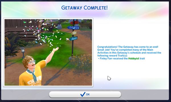 Getaways can be pretty much anywhere. You can create a recurring Sunday Dinner Getaway at Gramma's house for the whole family. (I suggest that you not schedule any "cooking" or "eating." Instead have a played Sim start cooking and invite everyone to "join" and then "call to meal.")