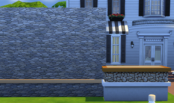 This is exactly why the Country Fieldstone foundation/platform is needed. It looks so bad to have the solid colored platform between the stairs and the fountain wallpaper.