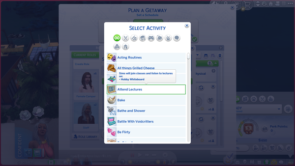 With that said, the getaway has some bugs that impact game play and I hope they get fixed in the next batch of patches. When planning a getaway, there is an option to attend lectures, but there is no option to run lectures and classes. The option to run lectures and classes exists elsewhere in the game - such as when operating a small business. But there is nothing available for the getaway. It feels odd to me to have one option without the other.