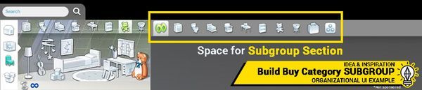 Referencing the Styled Rooms section of Build Mode, Subgroups could allocate this same top bar above the thumbnail preview panel.