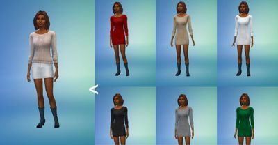 Do you have any suggestion of BASE GAME items (create a sim or build/buy) that should get new color swatches? Drop it here. Add the cardigan top color swatches to the cardigan dress and vice-versa....