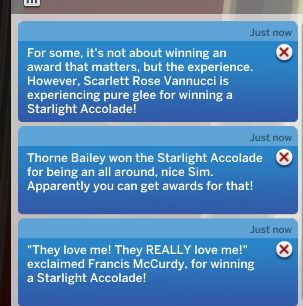 I hate the celebrity system when it comes to the Award Ceremony! The host doesn't wait for the NPCs who win get their award and just jumps back into hosting! Three winners, none of them could get their award because the Host kept going right back to calling the next winner! All I have, as far as mods, is MC Command Center.