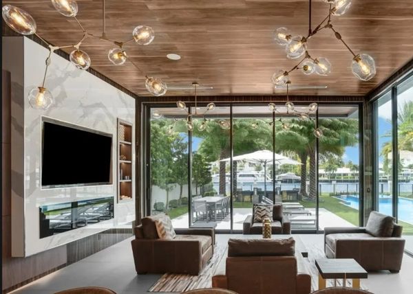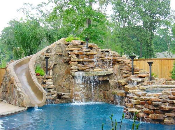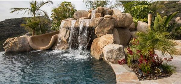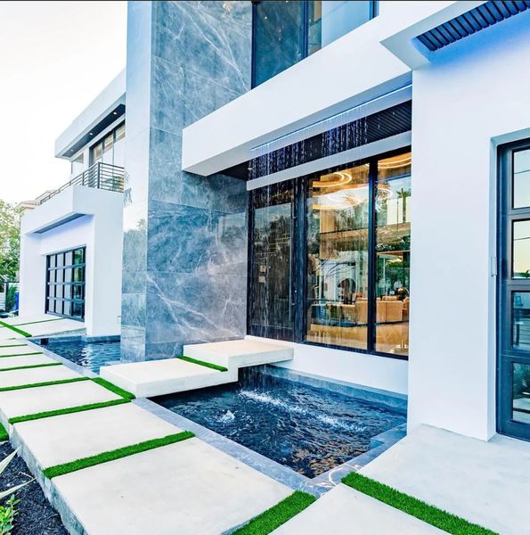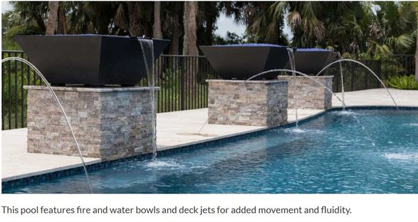 Add-on(s) would include a rain curtain water feature for indoor or outdoor placement, graduated pool elements with water spill, Poolside water feature, Adjustable height rock waterfall/cascade feature, Pool grotto with winding slide, pool steps, infinity pool, in-pool hot tub, functional billiards table with applicable stick rack, true functional spiral staircases, Dual sided fireplaces, Wall insert mounted fireplace with built-in TV, corner and wrap-around fireplaces,