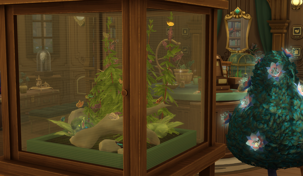 I love the butterfly/moth habitat—it looks so good with the butterflies/moths displayed! But now all I can think of is having something like this for frogs, axolotls and insects. The normal containers are not the most attractive (besides Death Frog) for all of these—Sims 3 did it better. But if collection habitats/displays were available for these it would be amazing :)
