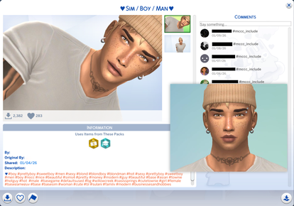 This second example, it doesn’t even mention any of the CCs they used to “yassify” the Sim they made. Just a bunch of inappropriate hashtags forming a wall of text in the description. Some of them even mention packs that weren’t even used to create the teen Sim (yes, teen); among the hashtags are keywords like “sexy”, “hot”, “hot guy”… “girl”? And the use of their vague (I’m sorry, I love that word) tag, “defaults used”.