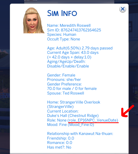 Then I have evidence that it's a Lovestruck (EP16) issue. I used the "Show Sim Info" mod to see the name of their role and found this (red underline).