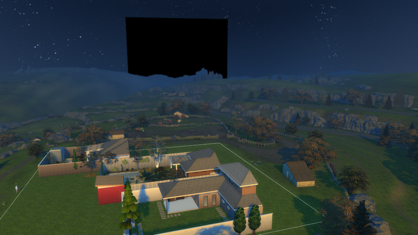 Since the event started tonight, i've noticed a black square hovering over Henford-On-Bagley while in build mode and changed the TOD to morning. It only appears to be affecting my current save. Below is an example. This only appears while in build mode.