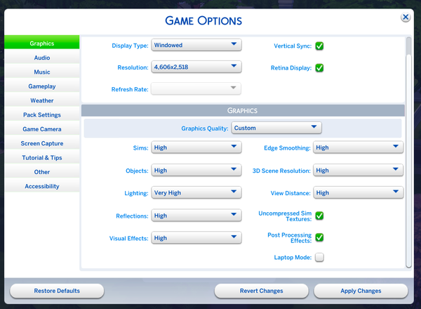 Here's my usual in-game graphics settings, the issue is still present on lower settings and on the Ultra graphics quality.