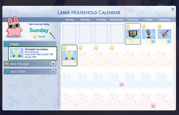 What happens when the bug occurs? My sim is not able to attend the award ceremony because each time the event is near - day turning from Sunday to Monday when the event is supposed to happen, it disappears from the calendar and I have to wait for another year and it continues to disappear.
