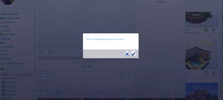 Hello today i wanted to download a room from my Gallery, named Pool Bar. to place it in a new build, but ea throws up a "Item is corrupted, do you want to remove it"? There were no cc or mod...