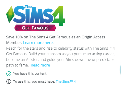 Hi, First Of All Merry Christmas...anyway let me get to the problem, so today i purchased the sims 4 get famous and seasons since they were onsale. now the problem is origin is saying i need the sims...