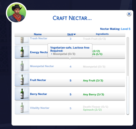 @gait_keeper I know some are saying you have to be the occults themselves in order to make the Nectar. My Werewolf was able to make Moonpetal Nectar. However, someone in a Discord server stated that she was able to make the Valerian Nectar with her human sim she made straight from CAS.