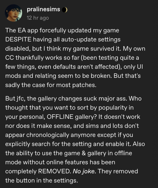 I noticed the community have encountered countless issues with this latest patch. Besides the obvious, It has also been reported some players paid packs are not showing up correctly and the new Gallery update has removed the ability to access the gallery while in 'offline mode'.