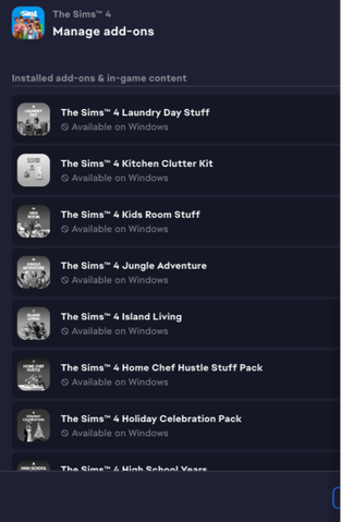 I looked at my "managed" items in the sims 4, and I saw this "Available on Windows". I have an Apple, and I have / had all of these packs. Does that mean that even though I own them (bought them) and saw that they were available for an Apple computer, that I don't have these, I don't own these. It's weird because I have all of the worlds, I have all of the stuff packs, even the new one that was released. So, do I have these on my computer or not?