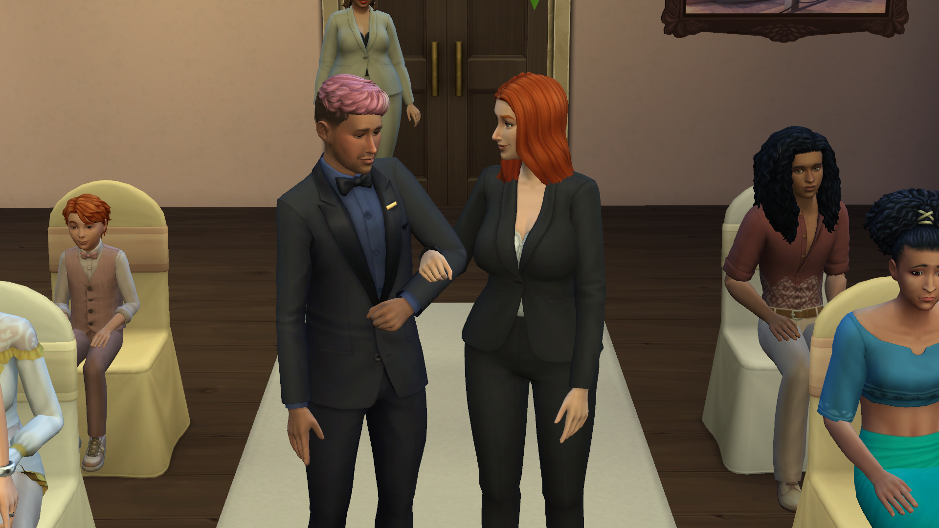 Here are a bunch of pictures of my sims at their wedding. These are all made in the vanilla game. MY wedding stories is actually really nice since they fixed it Helen Walking Up the asile with her b...