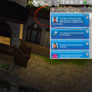 viviplaysims Not sure about pizza currently, but I know the food delivery person has left it 'somewhere' before that I never found and never got to the bottom of. However, I have been more diligent to watch for it lately and even if I miss them and remember it shortly it's been a long time since I couldn't find it... somewhere on the lot that made more sense than I thought it would when I started looking. Ugg... I hate that! I usually give up and re-order or do something else. Sorry that this is not much help, but I would guess it may turn into trash on it's own, or just be gone when you leave the lot. My condolences on your pizza. 😬