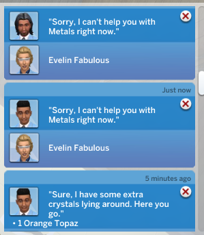 I have a sim in the science career who is max friendly with all of her coworkers. Despite this I have not once successfully had a coworker give my sim a metal or crystal when asked nor let her take a DNA sample(which makes it impossible to complete the daily task for it).