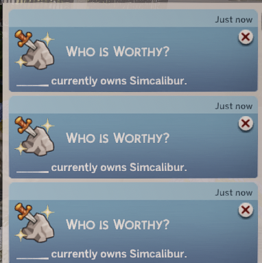 Sword isn't in the stone, when I click on 'where is the sword?' it says '______ owns the sword'. Doesn't give an actual name. Not in anyone's inventory. Even if I go to the stone in a completely empty world (no households) the sword isn't there.