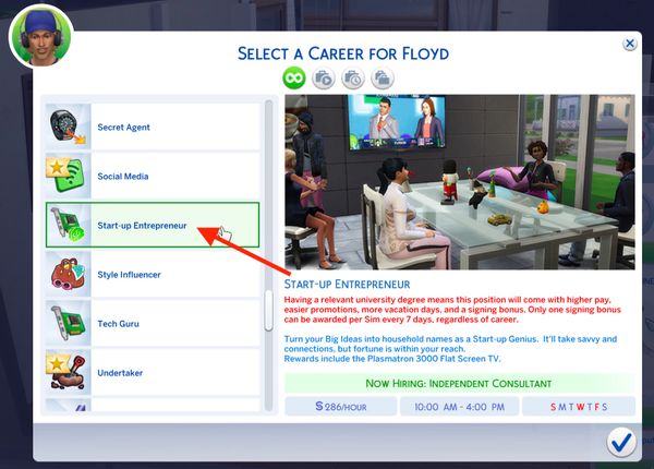 So my sim has the distinguished degree in Computer Science. So that degree is supposed to help you get level 7 or 8 in the Tech Guru career. After getting the degree I accepted the Tech Guru career, and I didn't get a promotion. I'm starting off at the very beginning.