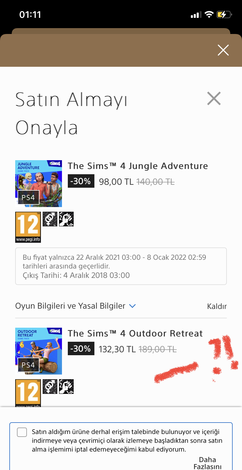 In picture check non discounted price. Outdoor retreat should have a price tag of 140 liras just like all other game packs. However it has a weird price of 189??!!