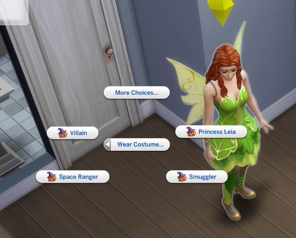I want my sim to dress as a witch for Halloween, not princess Leia.