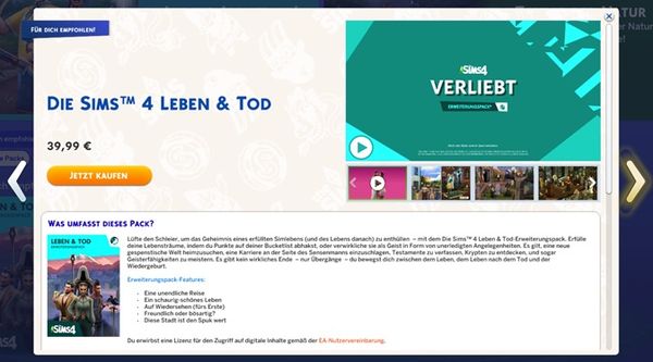 Zudem, im Ingame-Einkaufswagen, ihr wisst schon, der nervige ganz oben. 😁 Da wird beim Angebot Leben und Tod der Trailer von Verliebt abgespielt.