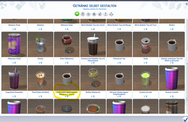 Im Dine Out-Pack bei der Zusammenstellung einer eigen Speisekarte. Ist wohl einer der Tees oder Kaffees? Der Text stammt aber doch aus dem Baumenü von Fenster-/Türen-Beschreibung: