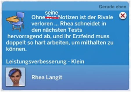 Da erscheint was im Text zu fehlen: Passend zum erspielten Trait müsste da doch ein den Helden (bzw. die Heldin, wenn es dort auch fehlt - kann ich aktuell nicht prüfen, da ich momentan keinen weiblichen Sim habe, die StrangerVille erfolgreich abgeschlossen hat) stehen: