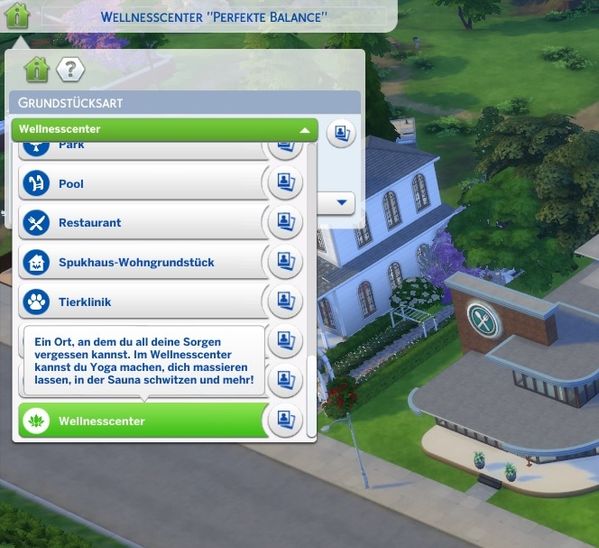 - Damit die Wellness-Optionen erscheinen, muss das Grundstück entweder Wellness oder Fitness sein, Wohngrundstücke gehen nicht.