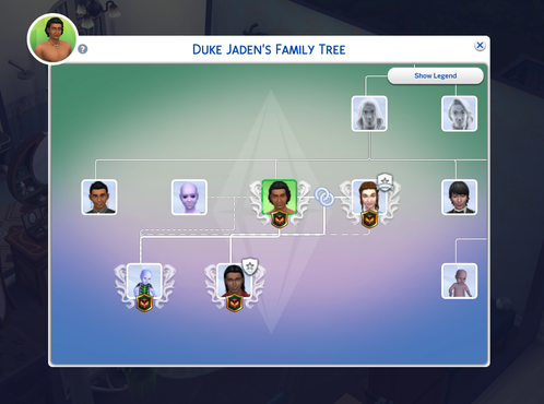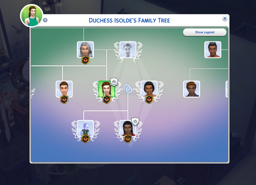 Just found that one out, and as usual, I forgot to take a screenshot of the popup, so here are the relevant views of the family tree (before Jaden tells Isolde the truth)