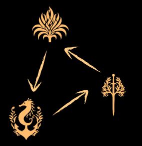 The 3 symbols might refer to the 3 types of kingdoms, which was leaked not too long ago. The sword/tree combination gives lord of the rings vibes and reminds me of the tree of gondor combined with the many swords with names in that story.