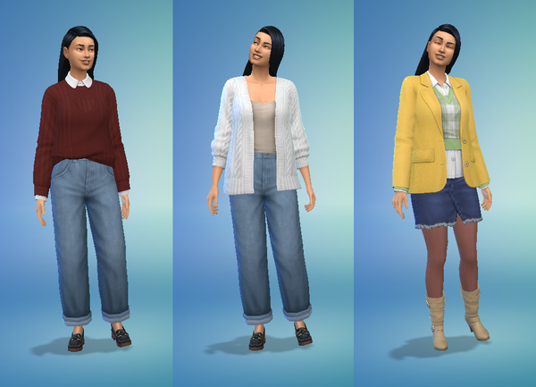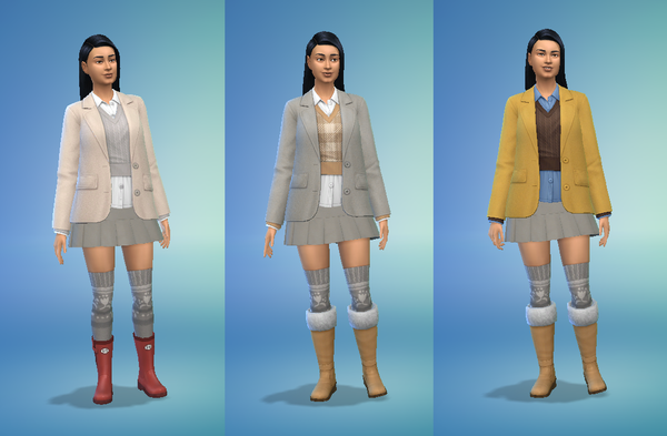 I do love this kit, there are some great outfits, but I hope they will fix the scarf accessory so that it can actually be worn with all the outfits rather than just one or two. That is a huge disappointment, especially when the base game scarf is fine with them...