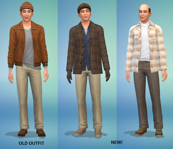 Enjoying the new kit (mostly) and a couple of sims so far have had new outfits. Here's Bill Cunningham: