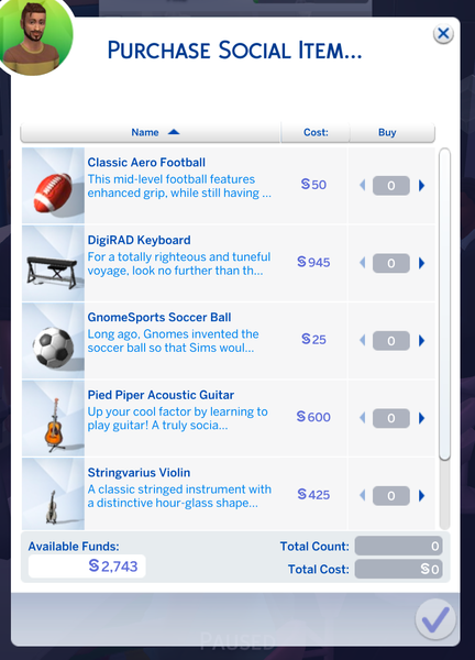 I assumed the soccer ball and football were tied to a pack. I believe the keyboard is as well, it comes with city living. But the guitar and violin are Base game.