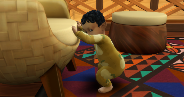 I caught a really cute picture that made me think this would be a fun thread. Please post pictures of your Sim(s) that you caught breaking that proverbial fourth wall. For those who may be unsure of what this theatrical term means, it's when the Sim appears to be looking right at the player. Here is the picture I found so adorable. This is my Rock Star, Erik Cantrell, holding Melodie, identical twin A, as he's ready to place her in her crib for the night.