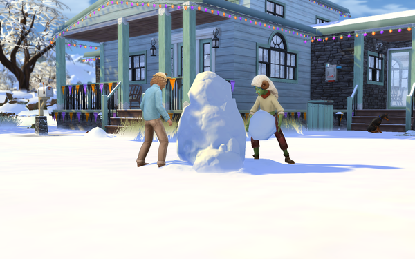 When the snow stopped falling, they went out to build a snowman.